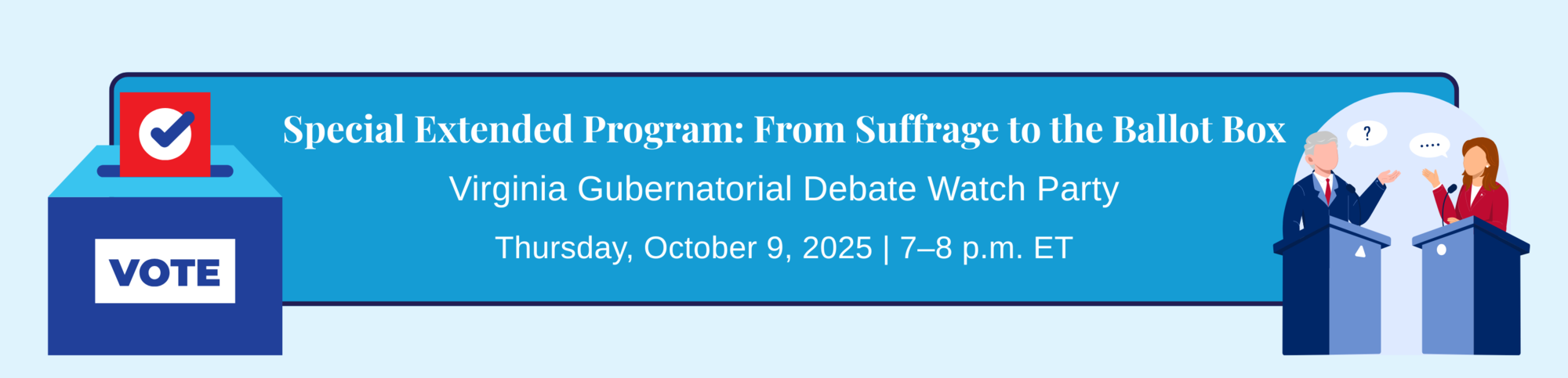 Hughes has led the National Susan B. Anthony Museum & House in Rochester, NY, since 2007. Under her leadership, the museum completed a major restoration, secured its Absolute Charter, and significantly increased attendance while staying true to its mission. She has launched award-winning programs like "VoteTilla" and represented the museum nationally in events such as the 2020 Rose Parade. A respected voice on women’s rights and history, Hughes has been featured in major outlets including The New York Times, The Washington Post, and the "She Votes" podcast. Her honors include the Women’s History Award from the Greater New York Chamber of Commerce, the “W” Award, and the Distinguished Alumna of Colgate Rochester Crozer Divinity School Award. An ordained minister, Hughes has served in urban churches and held national leadership roles within her denomination. Following our conversation with Deborah L. Hughes on the legacy of Susan B. Anthony and the ongoing fight for voting rights, we invite you to stay for a Virginia Governor’s Debate Watch Party. As we reflect on the power of civic engagement and the sacrifices made by past generations, we’ll gather to witness democracy in action and discuss what’s at stake in the upcoming election. Let’s honor the past by showing up for the present.