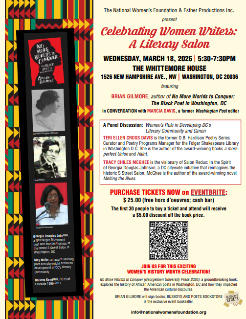 NWF: Celebrating Women Writers: A Literary Salon Back Export to Calendar Please load the calendar again. Add to Google Calendar Print Starts: Wednesday March 18, 2026 5:30 PM Ends: 7:30 PM
